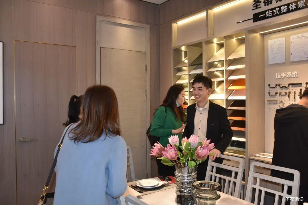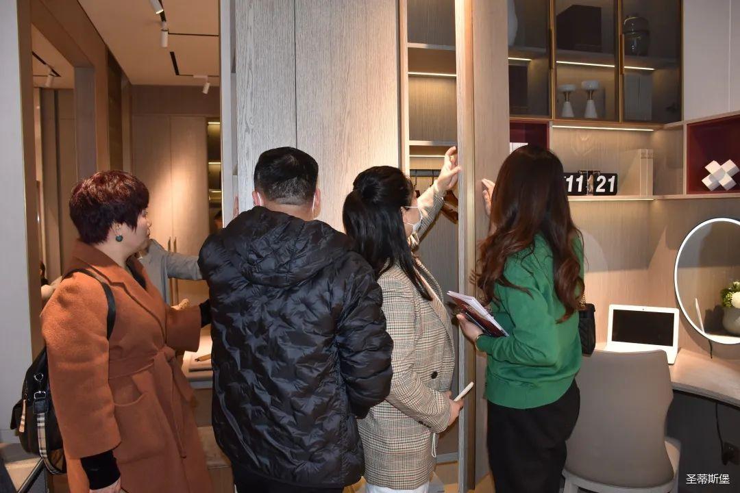展廳內(nèi),專業(yè)的導(dǎo)師為嘉賓們?cè)敿?xì)介紹了產(chǎn)品工藝特點(diǎn)、整體造型特色、裝飾元素以及色彩搭配等;還有全屋定制、固裝、營(yíng)銷等部門高管,與經(jīng)銷商熱情的交流溝通,并為大家講述了圣蒂斯堡的原創(chuàng)設(shè)計(jì)理念?!奥逅埂敝鞔虻牟町惢p奢,更是贏得了在場(chǎng)經(jīng)銷商家人的高度贊譽(yù);圣蒂斯堡用實(shí)際行動(dòng)證明了在家居界不可比擬的產(chǎn)品優(yōu)勢(shì)和實(shí)力。